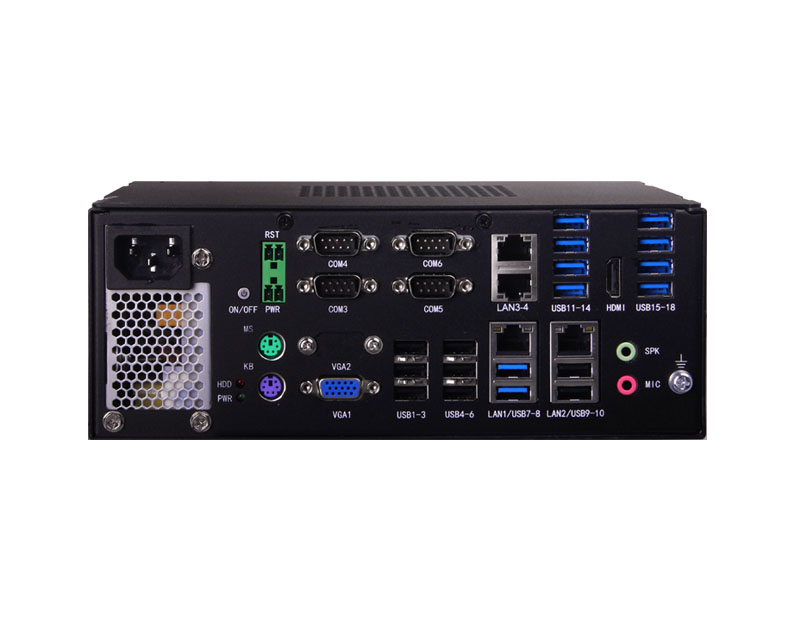 支持Intel 6/7代 Core i3/i5/i7 LGA1151 處理器,4*LAN,10*USB3.0,8*USB2.0,4*COM,230mm x 190mm x 90mm (W x D x H)