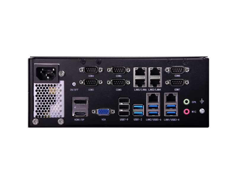 支持Intel 10代 Core i3/i5/i7 LGA1200 65W處理器,6*LAN,6*USB3.0,4*USB2.0,6*COM,230mm x 190mm x 90mm (W x D x H)